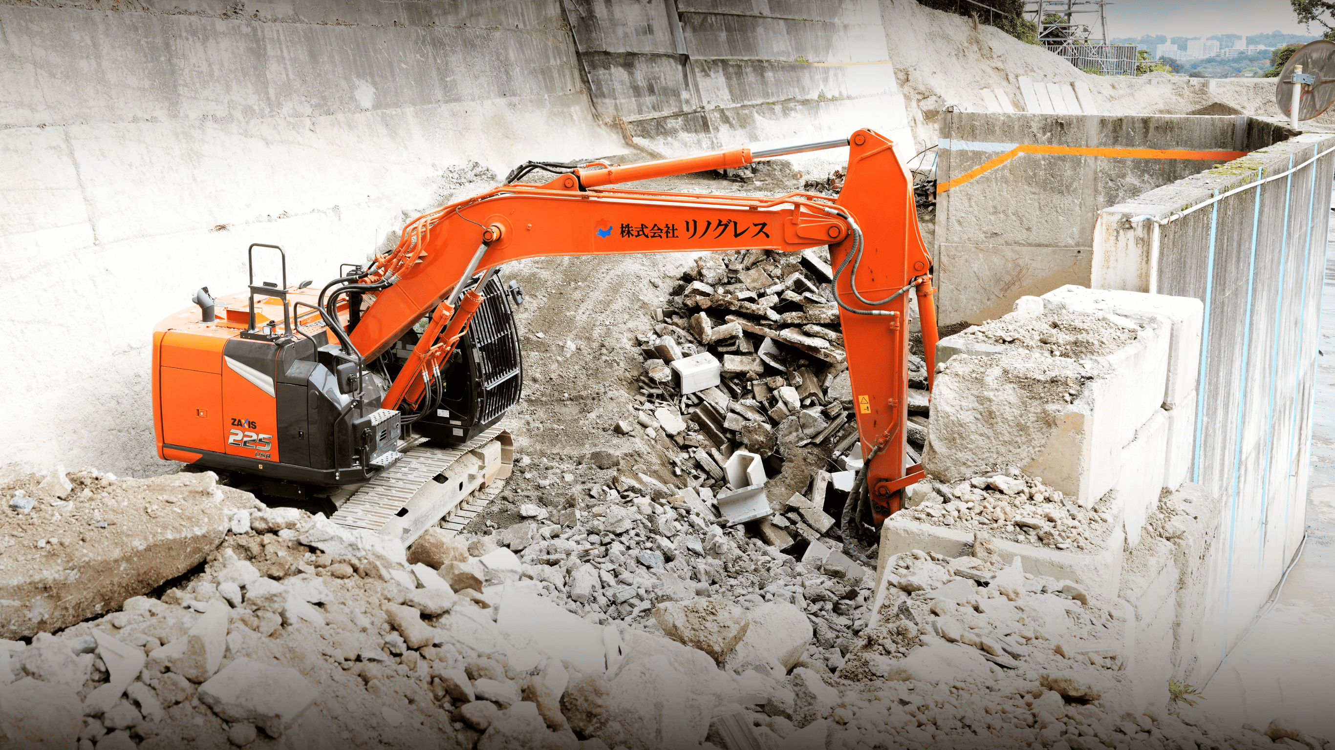 工事現場から吐き出されたコンクリートなどのガラは(株)リノグレスのリサイクルセンターへ持ち込まれ処理され、再び骨材として生まれ変わります。