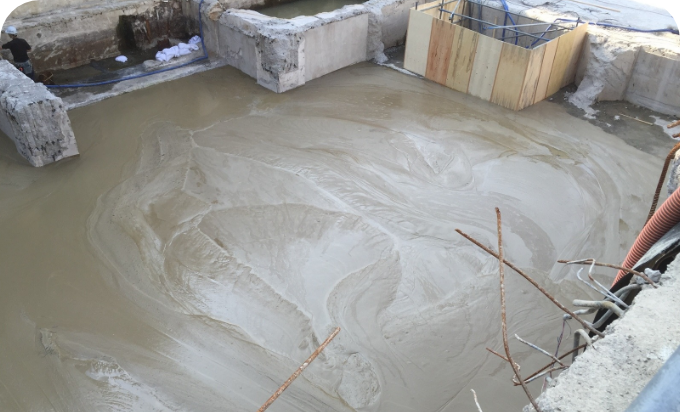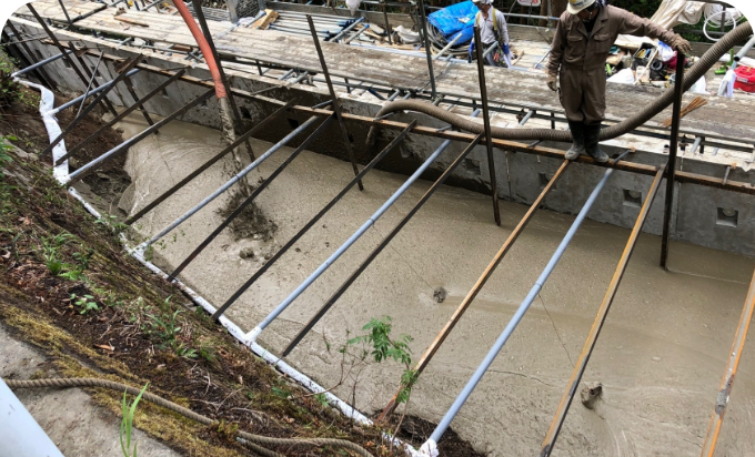 工場で材料を調整後、現場へ運搬