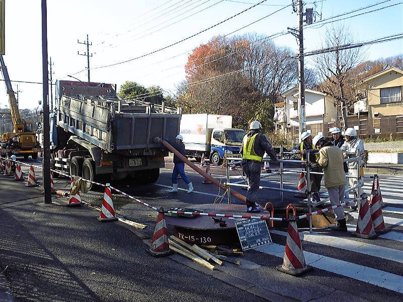 地元八王子市内における流動化処理土の打設状況です。