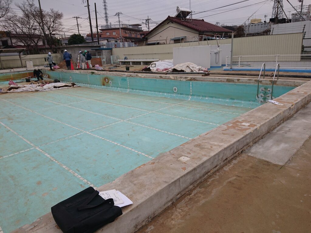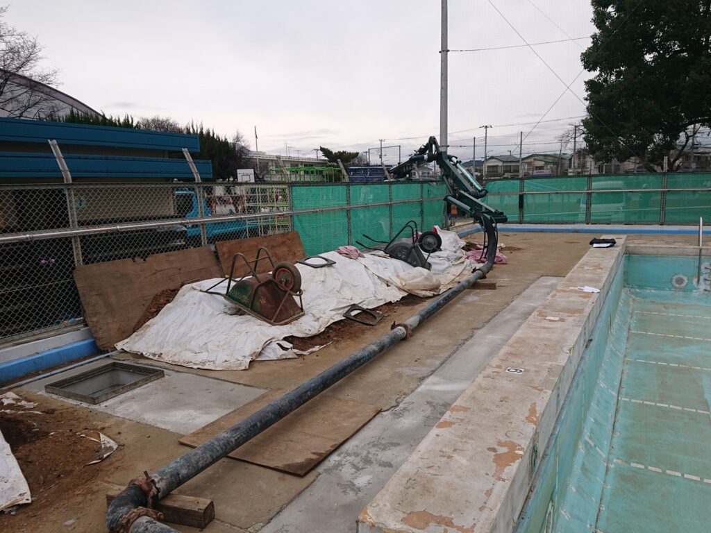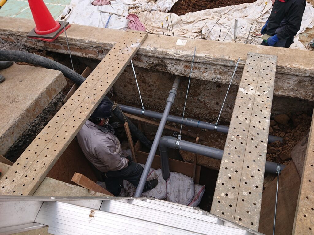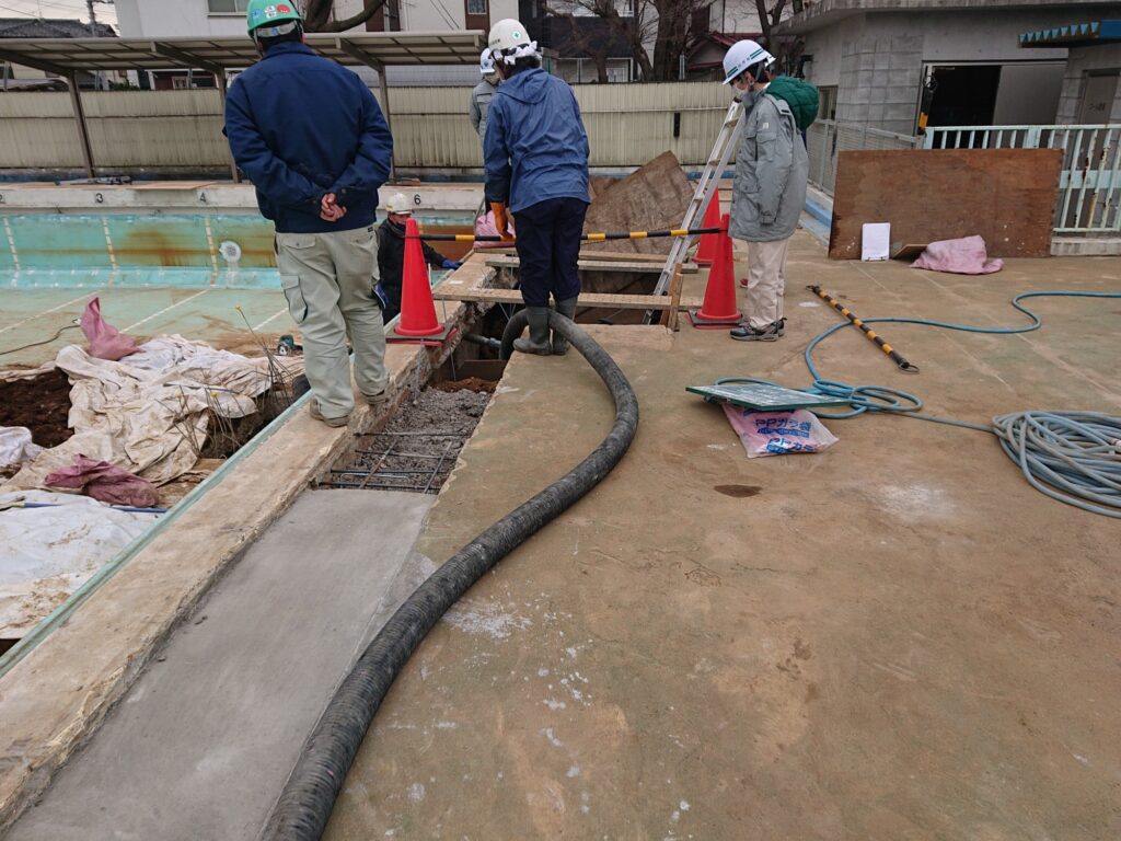 小学校プール脇の配管埋戻しにおいて、流動化処理土を採用しました。